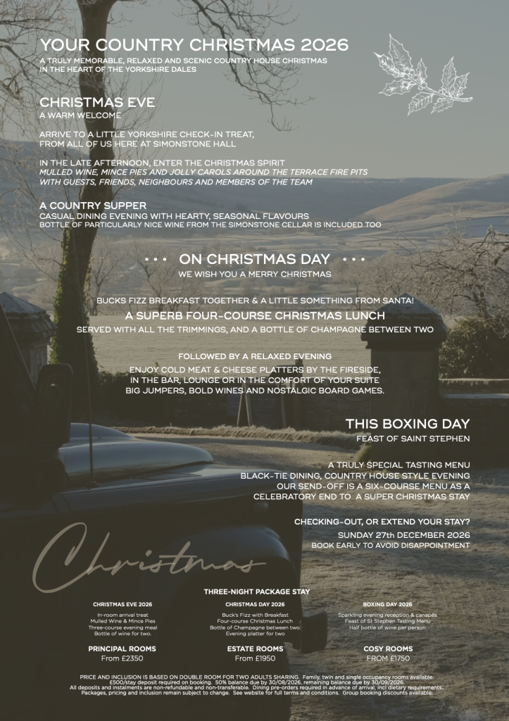 And, its a truly great rate too – superb value, beautiful rooms and suites, and those epic valley views too. Two-night Simonstone stay, starting from only £738 per stay, for two.
